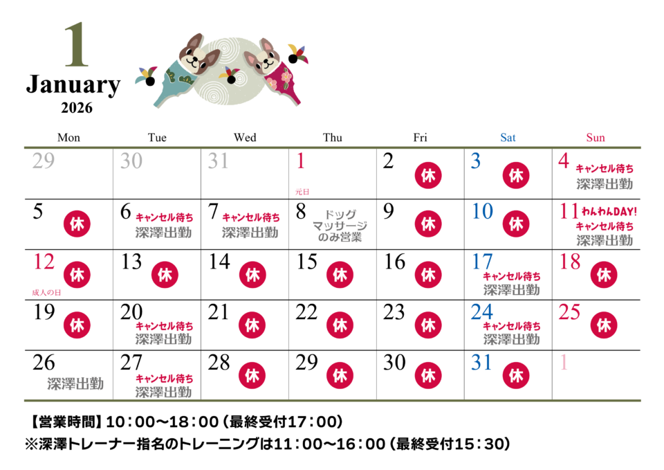 【営業時間】 ・10:00〜18:00(最終受付17:00/トレーニング内容により前後することがあります) ・深澤トレーナー指名のトレーニングは11:00〜16:00(最終受付15:30)となります。 ・1月中のスイムトレーニングはキャンセル待ちとなりますのでご了承ください(2026.1.11現在)